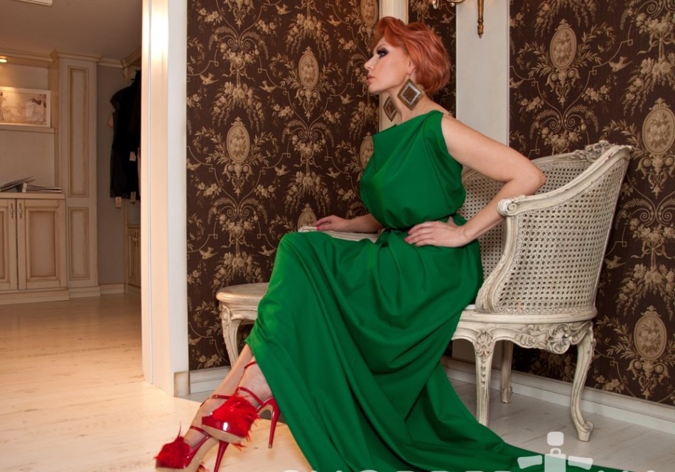 Якщо хочете показати витонченість своєї взуття, вибирайте плаття не великий довжини, або ж в підлогу, але з великим розрізом. Підбираючи сукню під замшеві смарагдові туфлі, зверніть увагу на оксамитові варіанти нарядів.