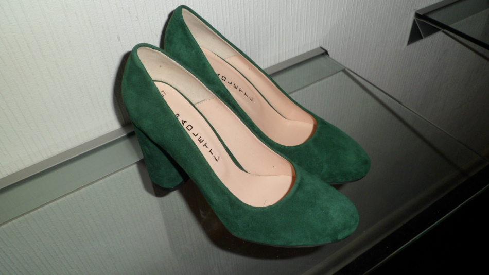 У створенні образу слід враховувати не тільки колір виробу, але і матеріал його виконання. Класичні шкіряні туфлі смарагдових відтінків здатне підходити і відповідати практично будь-якого сукні.