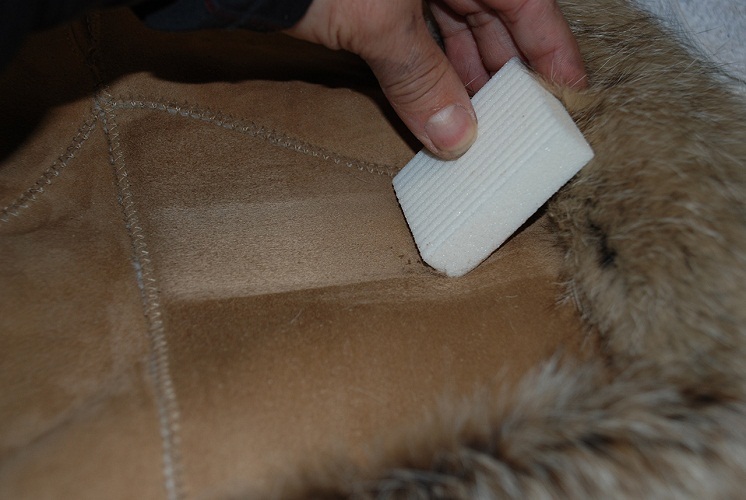 - Якщо взяти білий шматочок тканини, злегка змочити і протерти поверхню дублянки, на ньому не повинно залишитися слідів фарби. В якості доступного аналога можна використовувати звичайну вологу серветку. В іншому випадку, це неякісна фарбування-напилення. Така дублянка може придбати неоднорідний колір при попаданні під дощ або під час хімчистки.