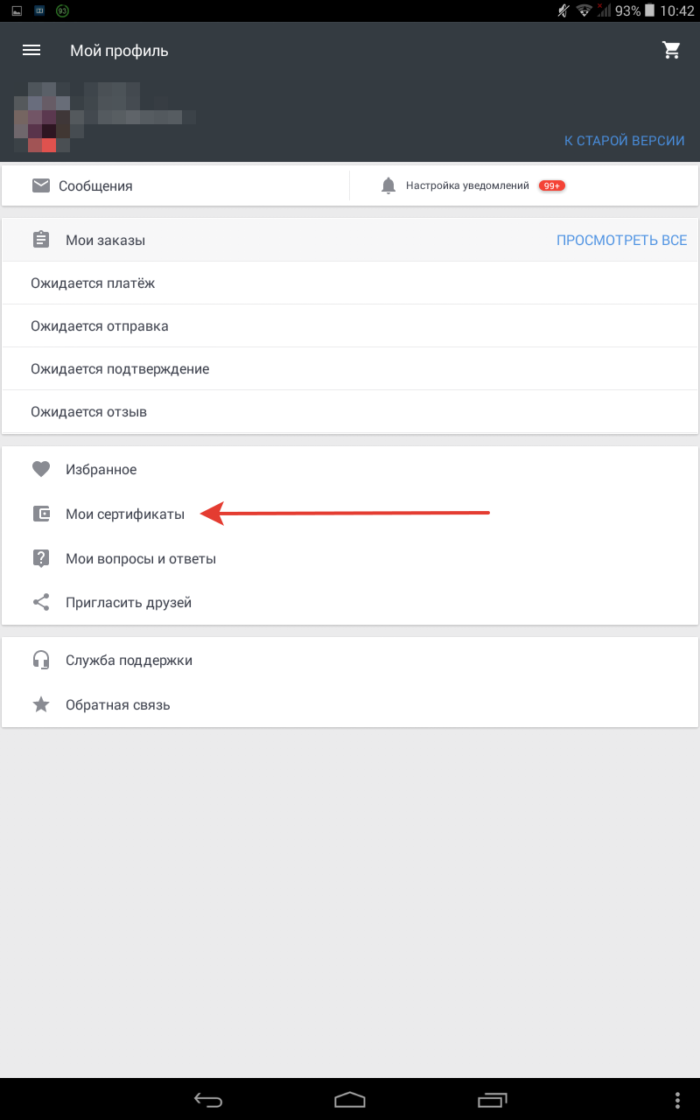 - У меню особистого кабінету вибирайте «Мої сертифікати»;