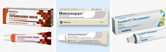 Традиційна медицина пропонує великий вибір всіляких засобів для боротьби з цим неприємним недугою. Це протигрибкові препарати для перорального та зовнішнього застосування. Кожен з них передбачає руйнування хвороботворних організмів, однак у зв’язку з великою різноманітністю ліків і наявністю індивідуальних особливостей, підбирати препарати і визначати курс лікування повинен тільки кваліфікований спеціаліст. На початковій стадії недуги впоратися з недугою допомагають такі зовнішні засоби: