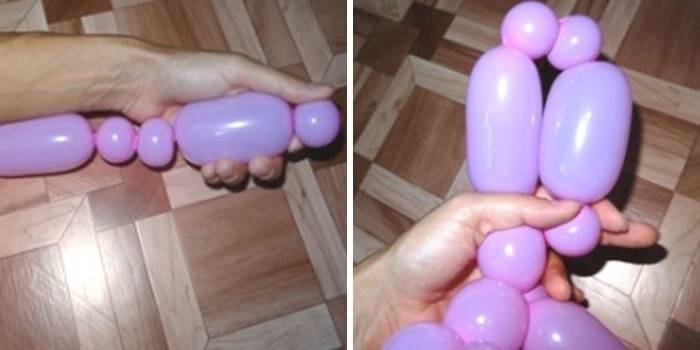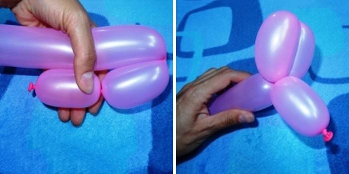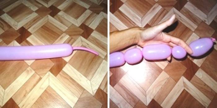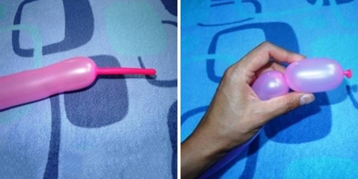 Для початку потрібно надути заготовку, щоб сдутым залишилася тільки частина хвоста (5 см цілком вистачить). Повністю надута куля згодом просто вибухне, тому в будь-якому випадку залиште трохи вільного простору. Врахуйте: якщо воно заповнилося і майбутня іграшка стала дуже тугий, то треба спустити трохи повітря. Затисніть місце, до якого треба спустити повітря. Робіть це обережно, оскільки іграшка може спуститися повністю. Як тільки необхідний об’єм повітря буде спущений, основу слід зав’язати. Приступаємо до фігурці: