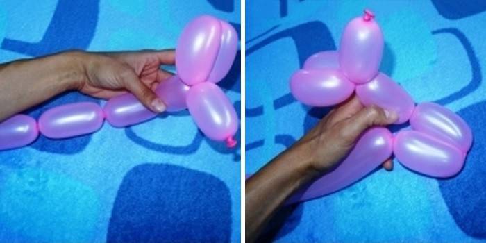 - За прикладом передніх лап робимо і задні. Розміри задніх лап такі ж – не більше 7 див. Скручені бульбашки слід накласти один на інший, після чого закрутити замок на кілька обертів.