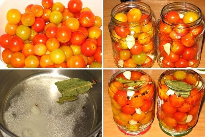 Процес приготування маринованих черрі помідорів з часником: