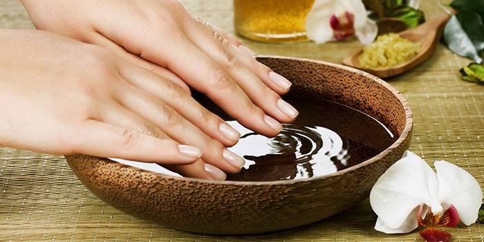 Миємо руки з нейтральним милом під теплою водою, наносимо крем біля нігтів. Підійде будь-який з доступних. Він необхідний для оберігання шкіри пальців від впливу агресивних елементів рідини. Нехтувати цією рекомендацією не можна, може виникнути алергія або почервоніння.