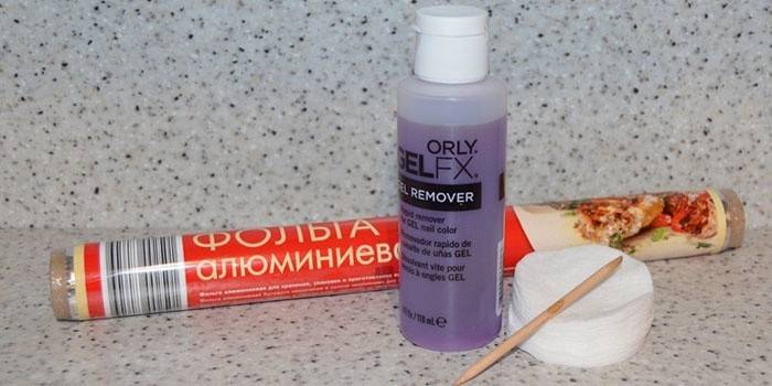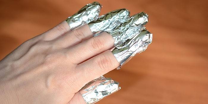 Щоб швидко зняти товстий шар з нігтів, потрібно покласти змочені ватні тампони на нігтьові ділянки, зверху закрити харчовою фольгою. Вона застосовується для прискорення процесу руйнування гелю.