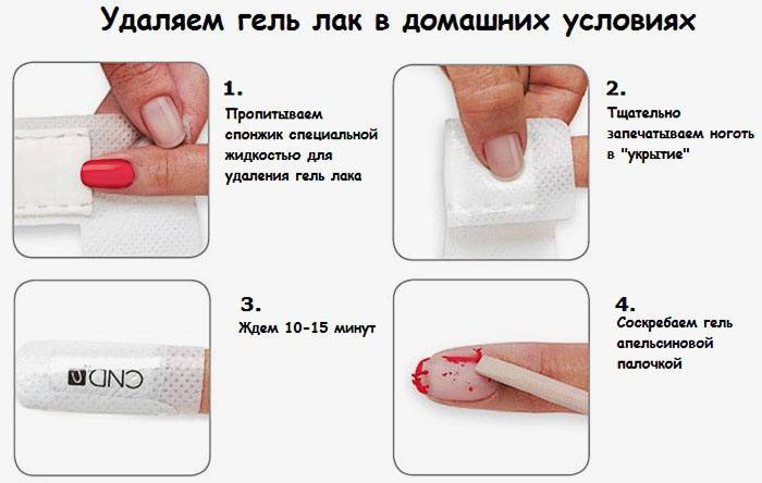 Знімають гель-лак поступово, не поспішаючи. Існує відповідна технологія, що дозволяє знизити ймовірність помилки. Видалення покриття не повинно призвести до пошкодження власних нігтів, тому дотримуйтеся черговості етапів: