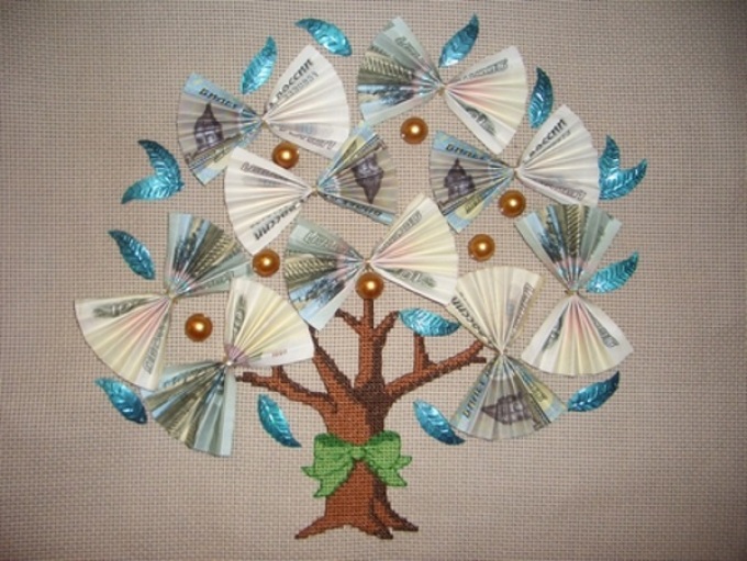 Найчастіше виріб у вигляді дерева роблять з купюр. Справжні гроші, звичайно ж, володіють великим «чарівництвом», але навіть штучні (сувенірні купюри) підійдуть, адже саме вони є символом добробуту.