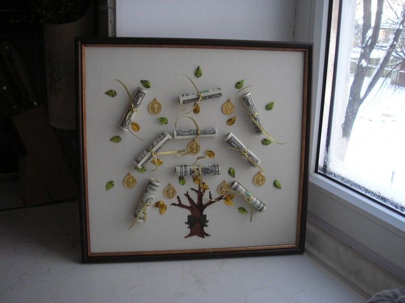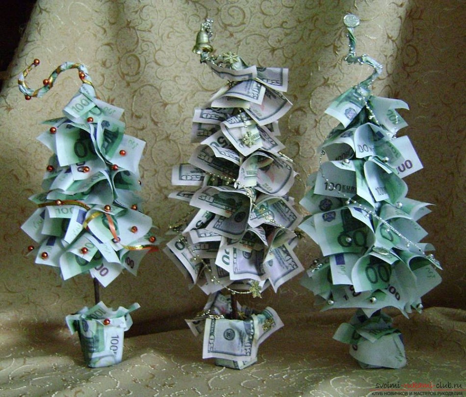 Грошове дерево своїми руками в подарунок на Новий рік: привітання до подарунка