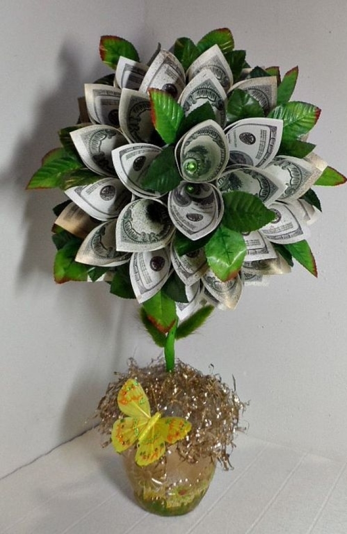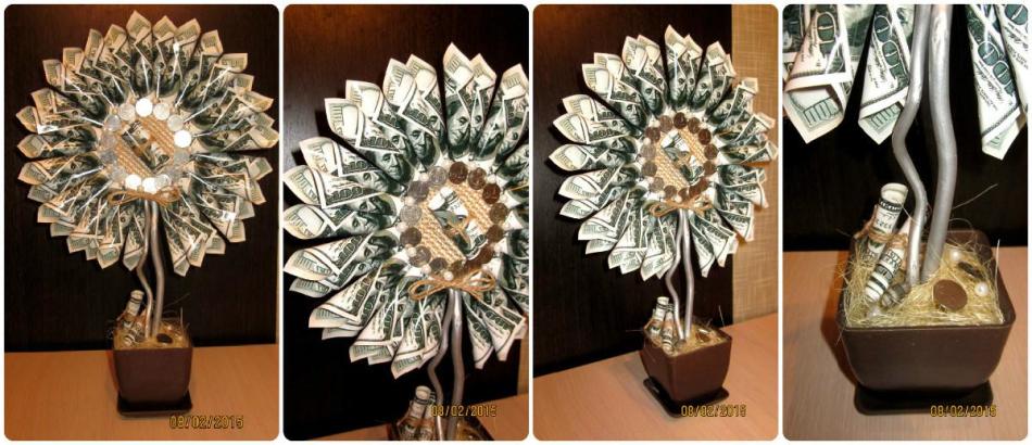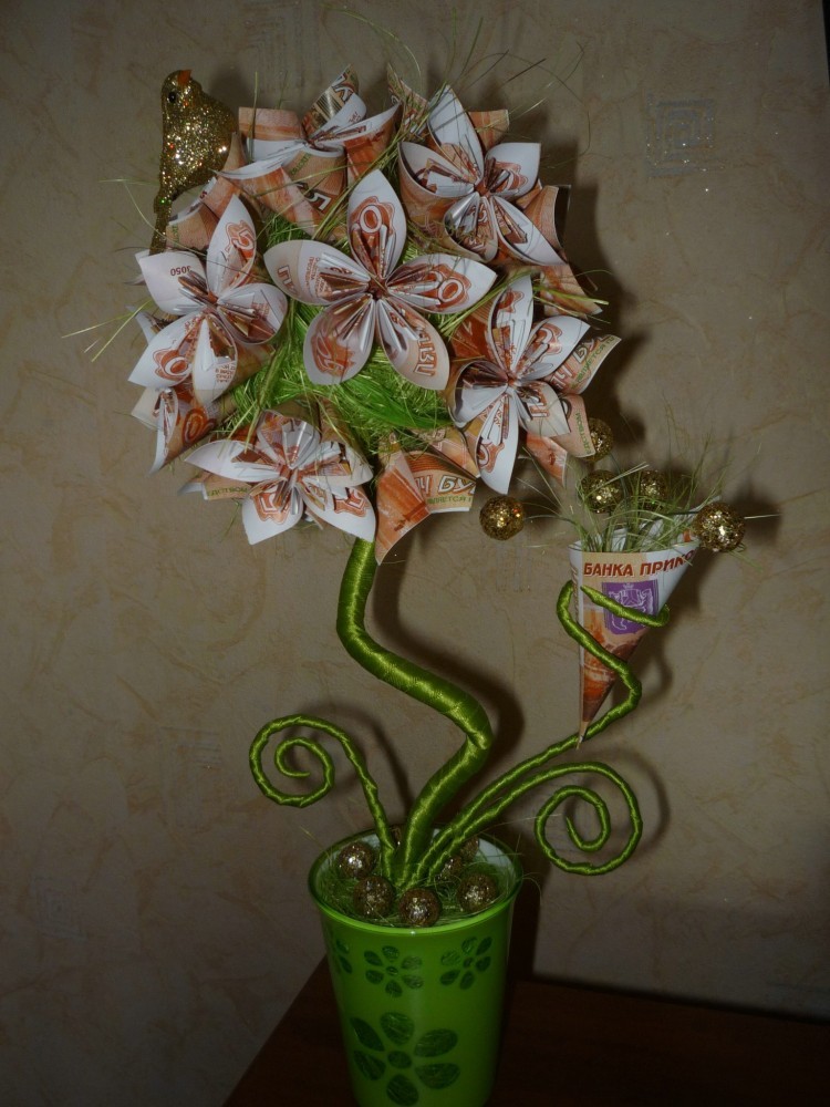 Грошове дерево своїми руками у подарунок на День народження: привітання до подарунка