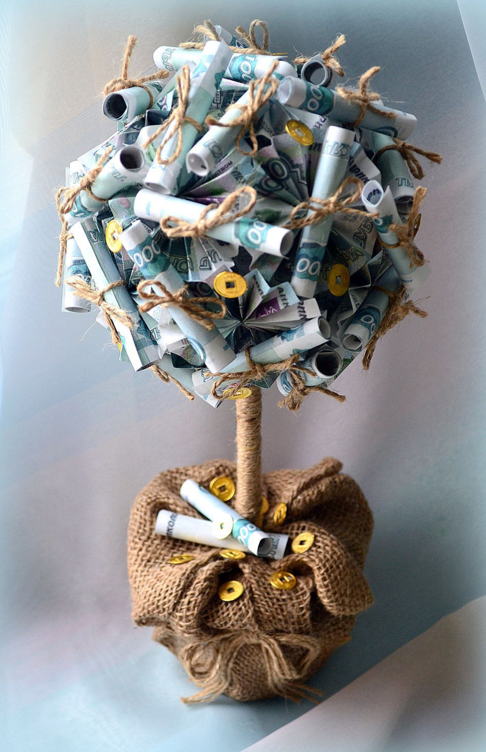 Грошове дерево своїми руками в подарунок на ювілей: вітання до подарунка