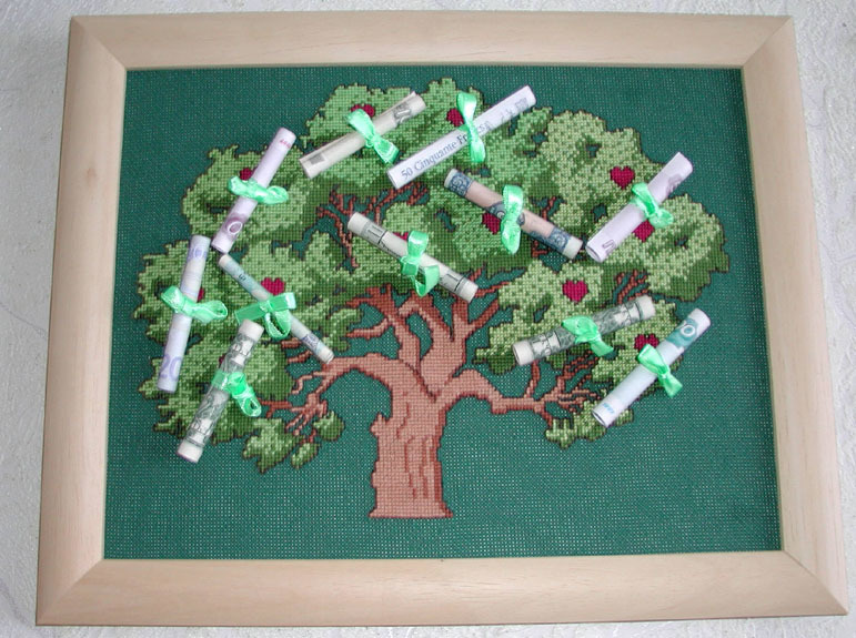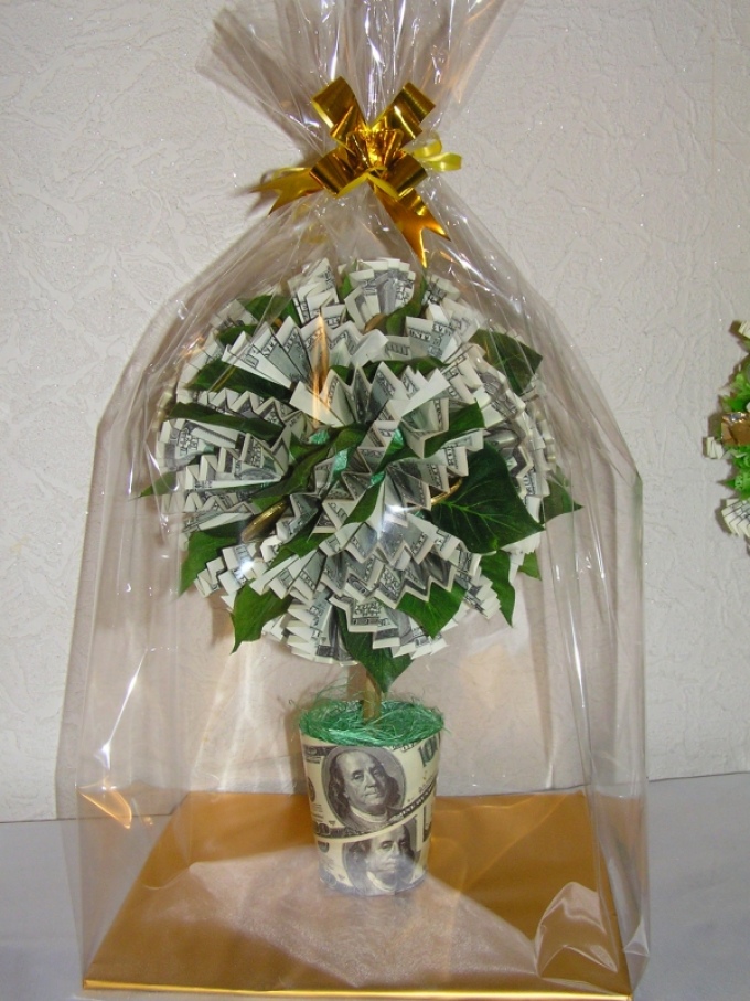 Грошове дерево своїми руками у подарунок на весілля: привітання до подарунка
