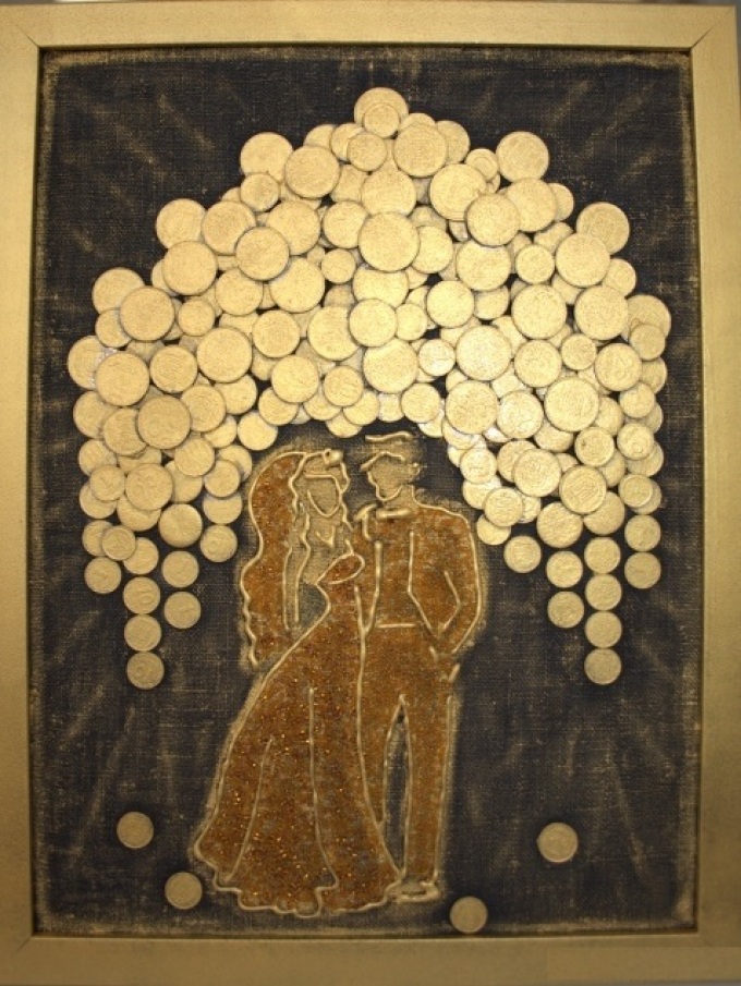 еньги – кращий подарунок на весілля. Але що якщо цей подарунок піднести незвичайним способом? Банальний конверт з купюрами вже нікого не дивує, не дарує радість і приємних спогадів. Прекрасною альтернативою конверту або листівці стане топіарі або «грошове дерево».Такий подарунок можна зробити самостійно, скрутивши справжні купюри, а не сувенірні. Робити це потрібно обережно, щоб не зіпсувати гроші – краще всього скрутити трубочкою і прив’язати на нитці. Вручати такий подарунок слід урочисто і так, щоб кожен зміг оцінити вашу оригінальність. Не посоромтеся підібрати спеціальні вірші і поздоровлення, щоб буквально «зарядити» ваш подарунок позитивною енергетикою.
