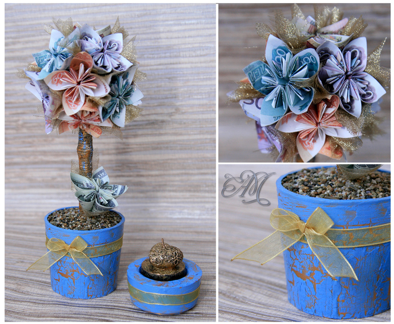 «Грошове дерево» — незвичайний подарунок на будь-який день народження. Ви зможете красиво піднести будь-яку грошову суму оригінальним способом.