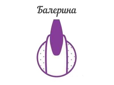 Балерина — це модна і цікава форма нігтика, при якій вільний край нігтя закруглений біля основи, звужений і підпиляний під квадрат на кінці. Форма дійсно нагадує пуант балерини. Цікаво, що у неї є ще одна, менш привабливу назву – coffin, що в перекладі з англійської означає труну.