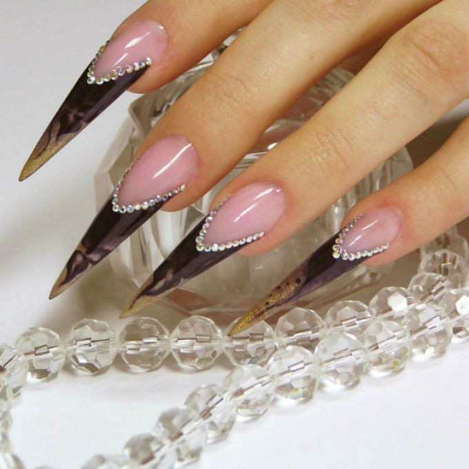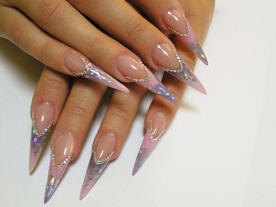 - Якщо у жінки тонкі пальці, середньої довжини або довгі нігті, вона може вибрати одну з загострених форм (стилет, піку, блейд, інші)