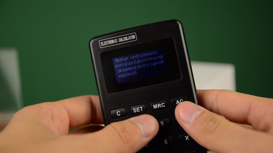 Виглядає такий предмет як цілком звичайний калькулятор. Однак на його пам’ять можна записати масу корисної студенту інформації. Під час іспиту залишається просто робити вигляд, ніби потрібно зробити підрахунок.