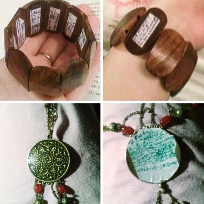 Дівчата можуть сховати підказку під яке-небудь прикрасу. Наприклад, кулон або браслет. Бажано, щоб такий аксесуар без праці повертався в будь-яку сторону – вчасно захована шпаргалка залишиться непоміченою. Ідеально підходять браслети, що складаються з окремих камінчиків.