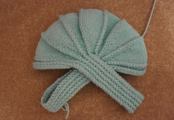 - До речі, можна виконати гумку ширше. Але в цьому випадку тоді варто робити і початковий відрізок довший. Хоча ми пропонуємо виключити його зовсім. Тобто, почати з 8-10 петель з різким збільшенням по 2-3 петлі в кожній лицьовій петлі у наступних рядах.