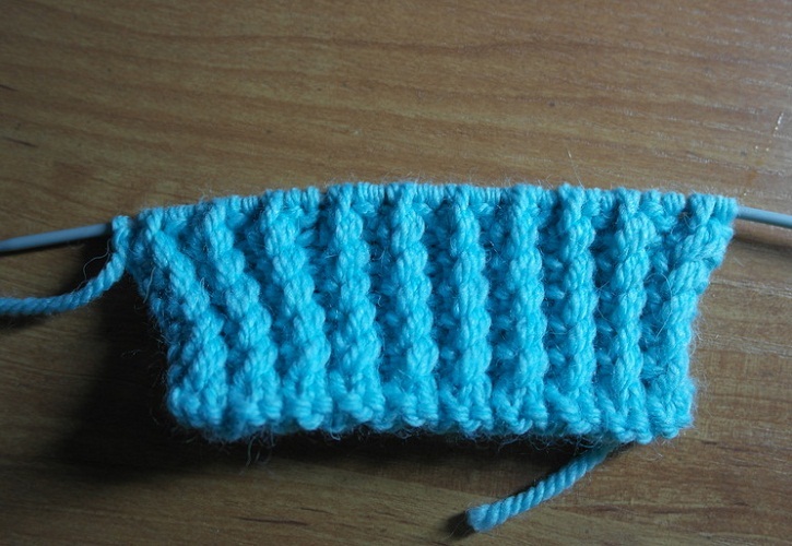 - Починаєте роботу виворітними рядами! Тоді перший валик буде мати правильний заворот. Провязываете 5 рядів, але не з’єднуєте в кільце. Тобто, ряд в’яжіть виворітними, перевертаєте виріб і проходите лицьовими петлями по візерунку.