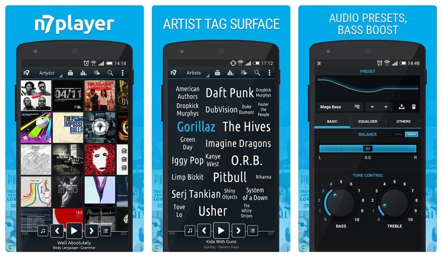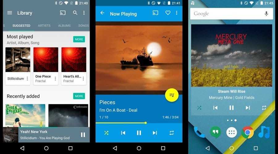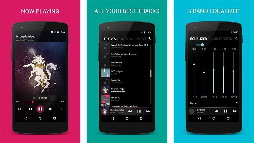Аудіоплеєр, який має звичний для багатьох Material Design і широкий функціонал. Тут присутній шестистопного еквалайзер, є налаштування програвання музики без пауз, пошук текстів, різні теми і інший цікавий функціонал. Якщо придбати платний варіант, то додатково додається підтримка Chromecast, редагування тегів, робота з папками і так далі. Користувачі відзначають, що програма добре виконує свої основні функції та його точно варто випробувати в справі.