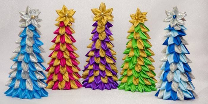 Ялинка з атласних стрічок — як зробити в домашніх умовах