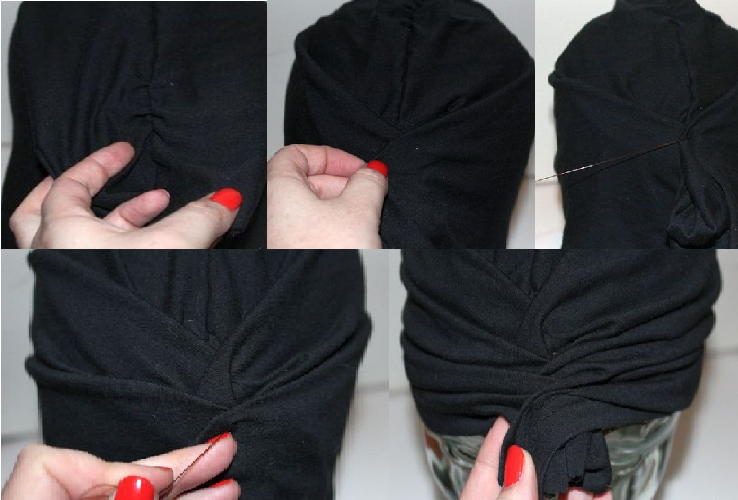 - Також грає роль, і їх величина — чим більше захоплення, тим менше складок потрібно. Пристебніть ниткою, щоб вони закріпилися.