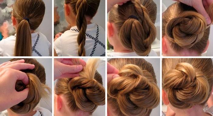 Шкільне життя нерідко буває насиченою і активною, а тому зачіска повинна бути максимально зручною. Варіант з повністю зібраними волоссям підходить для днів, коли належить урок фізкультури або похід в театр. Класний пучок виглядає красиво, витончено, підкреслює ніжне обличчя дівчинки. Щоб дізнатися, як укласти волосся, дивіться покрокову інструкцію: