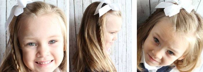 Розпущене волосся виглядають красиво, але не завжди цей варіант зачіски підходить для повсякденного носіння в школу. Щоб надати їй більш акуратний і охайний вигляд, мама може створити цікаву зачіску з косою набік. Симпатичне плетіння зробить образ дівчинки зворушливим і ніжним, така зачіска підійде для святкового носіння. Як зробити: