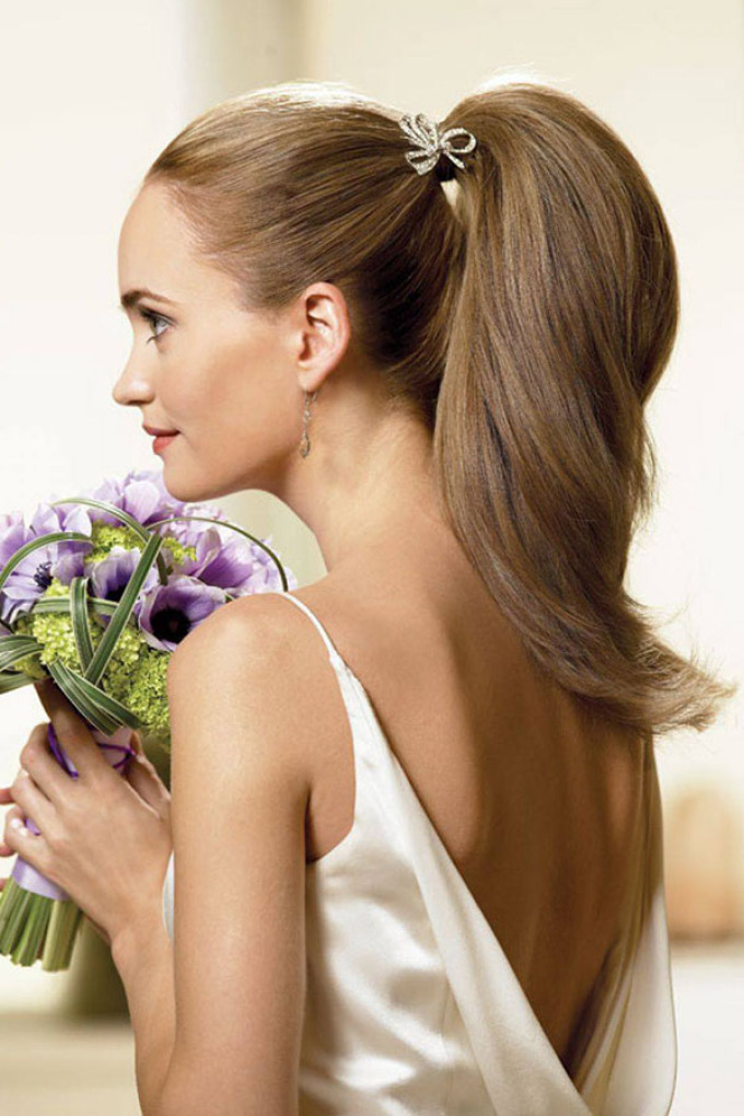 • Задню пасмо теж треба зібрати. Але поки не в пучок, а в тугий хвіст. Хвіст переважно розмістити вище.