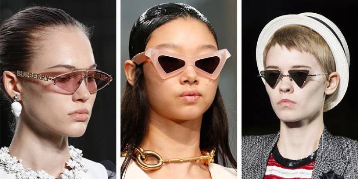 Дизайнери люблять озиратися назад, тому самі модні сонцезахисні окуляри 2019 року – це привіт з 90-х для шанувальників фільму «Матриця». Витягнуті до скронь маленькі трикутники в пластиковій оправі сьогодні представлені навіть у брендів мас-маркет: Zara, Mango, Bershka. Вони однаково підходять до строгому офісному поряд або легкого літнього плаття. Інший незвичайний варіант – тонкі прямокутні лінзи з оправою і без, які привертають до себе ще більше поглядів.