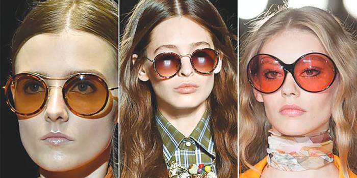 • Ретро. Круглі лінзи в стилі 70-х років, широкі білі пластикові оправи, ланцюжок на шию знову на подіумі і в сумочках модниць.
