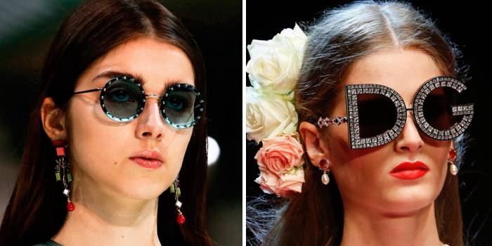 Жіночні, стильні сонячні окуляри пропонують відомі модні Будинки (D&G, Givenchy), так і більш доступні бренди категорії мас-маркет Zara, Stradivarius. Найпростіший варіант – дрібні дорогоцінні камені по контуру лінзи – сподобається багатьом дівчатам. Більш смілива ідея, що вимагає акуратно продумувати образ, – рясна розсип страз і перлів на дужках, рамі, мосту.