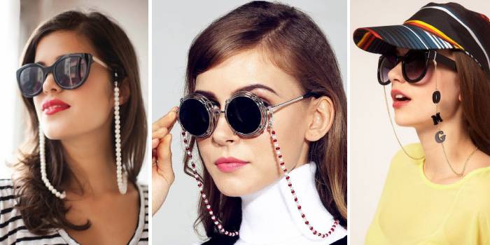 Модними сонячними окулярами 2019 року визнані моделі з ланцюжком. Це цікаво виглядає і дуже практично: аксесуар не загубиться, не зламається. Нові окуляри купувати не обов’язково: у продажу можна знайти знімні ланцюжка. Тонкі сріблясті і золотисті, з перлами або дрібними каменями – класика. Для бажаючих отримати помітний аксесуар продаються окуляри з великими пластиковими ланцюгами.