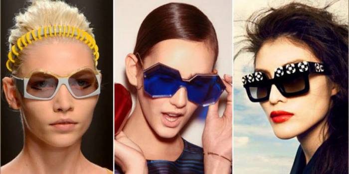 Самі модні сонячні окуляри 2019 року для обох статей – моделі незвичайних форм. Весняно-літні колекції Armani, Prada, McQueen вражають фантазією дизайнерів: асиметричні лінзи, геометрія, мініатюрні скла, масивні оправи. Присутні також оригінальні деталі – подвійні мости на переніссі, заклепки, дорогоцінні камені, ланцюжки або металеві кільця.