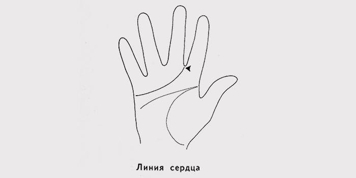 Несе важливі відомості про власника. По ній судять про темперамент, ніжності, чутливості, пристрасності, велелюбність, емоціях, сталості людини. Вона починається під мізинцем (з краю долоньки) і йде до пальців (середнього або вказівного). Довга, пряма, низько розташована, вона говорить про те, що людина здатна на сильні емоції. Чим вона изогнутее, тим емоційніше і чуттєвішими власник. По короткій і високо розташованої роблять висновок про нездатність виражати почуття, певної спонтанності.