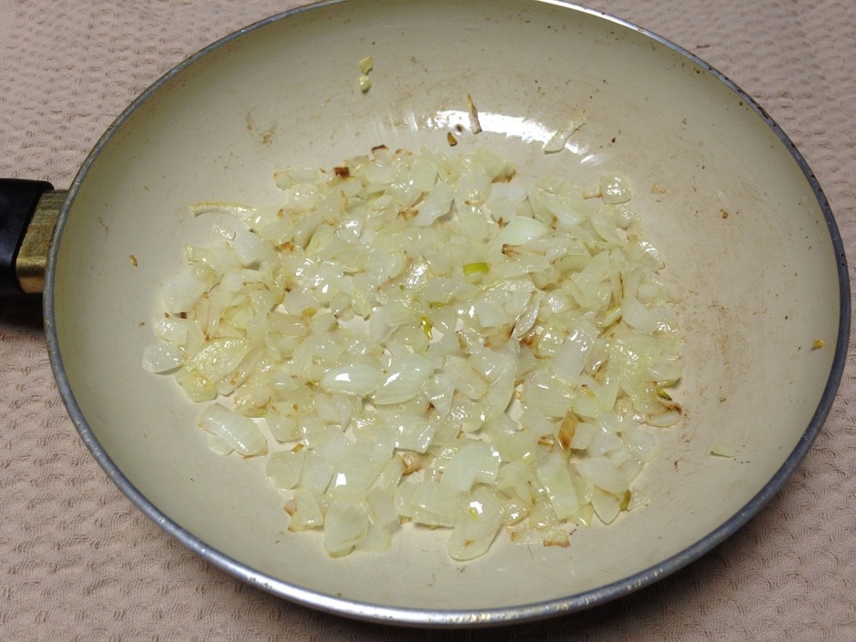 • Обсмажуємо дрібно нарізану головку цибулі